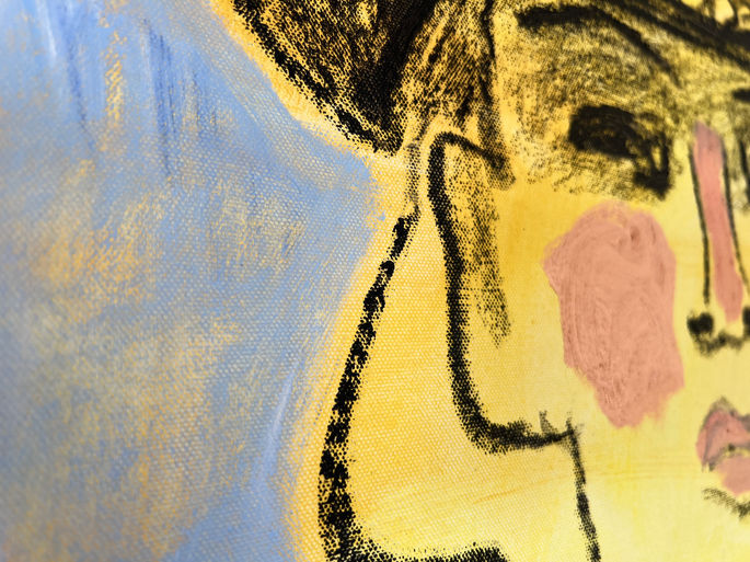 Oil, Acrylic, Oil Stick on Unstretched Canvas